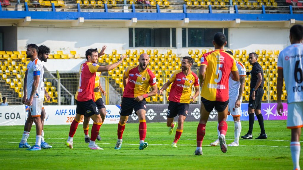 রে স্পোর্টজ ওয়েব ডেস্ক: পঞ্জাব এফসিকে ৩-১ গোলে হারিয়ে, সুপার কাপের ফাইনালে জায়গা পাকা করল ইস্টবেঙ্গল। গোটা ম্যাচে দাপট দেখিয়েছেন মহেশ, আনোয়ার আলিরা। এদিন লাল-হলুদ ব্রিগেড হয়ে গোল পেয়েছেন মহম্মদ রশিদ, কেভিন সিবিল্লে এবং অধিনায়ক সউল ক্রেসপো। এছাড়াও এদিনের ম্যাচের প্রথমার্ধের শেষের দিকে রেফারির সঙ্গে বচসায় জড়াতে দেখা গেছে ইস্টবেঙ্গলের হেড কোচ অস্কার ব্রুজোকে। যেই কারণে লাল কার্ডও দেখতে হয়েছে তাঁকে। ফলে ফাইনালে ইস্টবেঙ্গল ডাগআউটে দেখা যাবেনা অস্কারকে।