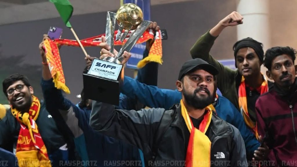 রে স্পোর্টজ ওয়েব ডেস্ক: শনিবার নেপালের অপিএফ এফসিকে ৩-০ গোলে হারিয়ে, প্রথম মহিলা ক্লাব হিসেবে বিদেশের মাটিতে ট্রফি জয়ের নজির গড়েছে ইস্টবেঙ্গলের মহিলা দল। এছাড়াও এই নিয়ে ৫টি বিদেশী ট্রফি জিতে ফেলল লাল হলুদ-ব্রিগেড। ইতিমধ্যেই ইস্টবেঙ্গলের মহিলা দলকে ঘিরে প্রত্যাশা বেড়েছে ইস্টবেঙ্গল সমর্থকদের। যেখানে পুরুষ দল ট্রফি জয় থেকে বিরত থাকছে, সেখানে মহিলা দল একই মরশুমে এই নিয়ে তৃতীয় ট্রফি জয় করে ফেলল। যেই কারণে রবিবার সন্ধ্যায় কলকাতা বিমানবন্দরে ইস্টবেঙ্গল দলকে স্বাগত জানানোর জন্য ভিড় জমিয়েছিলেন অসংখ্য লাল-হলুদ সমর্থকেরা।