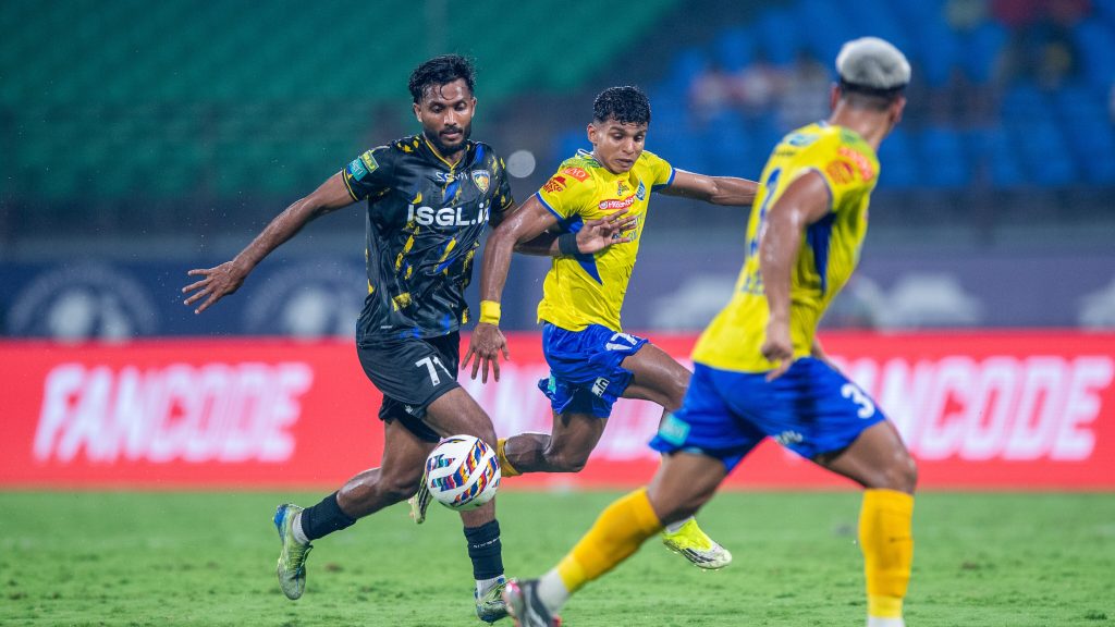 দ্বিতীয়ার্ধে সমতা ফেরাতে মরিয়া হয়ে ওঠে কেরল ব্লাস্টার্স। কেভিন ইয়োক, নিহাল সুদীশ ও আজসাল একাধিক আক্রমণ গড়ে তুললেও চেন্নাইয়িন গোলকিপার মোহাম্মদ নওয়াজ দুর্দান্ত সেভ করে দলকে এগিয়ে রাখেন। ম্যাচের এক পরিস্থিতিতে কাছ থেকে পরপর দুটি শট ঠেকিয়ে দেন তিনি।