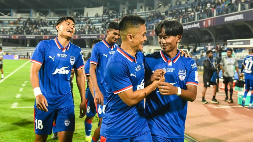 রে স্পোর্টজ ওয়েব ডেস্ক: রবিবার আইএসএলের চতুর্থ ম্যাচে শ্রী কান্তিরাভা স্টেডিয়াম-এ মুখোমুখি হয়েছিল বেঙ্গালুরু এফসি এবং ডেবিউ দল দিল্লি এফসি। ম্যাচের শুরু থেকেই রায়ান উইলিয়ামস, ব্রায়ান স্যাঞ্চেস ও আশিক কুরুনিয়ানের লাগাতার আক্রমণে চাপে পড়ে দিল্লির রক্ষণভাগ। প্রথমার্ধের অতিরিক্ত সময়ে নিখিল পূজারির হেড থেকে বাড়ানো বল জালে জড়িয়ে দলকে এগিয়ে দেন শিবাশক্তি।দ্বিতীয়ার্ধেও আক্রমণের ধার বজায় রাখে বেঙ্গালুরু। তবে একাধিক সুযোগ তৈরি করেও গোল বাড়াতে পারছিল না তারা। ফ্রিকিক থেকে দিল্লিও সমতায় ফেরার সুযোগ পেলেও কাজে লাগাতে ব্যর্থ হয়। ম্যাচের ৭৮ মিনিটে বদলি হিসেবে নামেন সুনীল ছেত্রী। এরপর সংযোজিত সময়ে বক্সের বাইরে থেকে দুরন্ত শটে গোল করে ব্যবধান দ্বিগুণ করেন তিনি। গোলের পর নিজের পুত্র সন্তানের মতো সেলিব্রেশনেও নজর কাড়েন ছেত্রী। শেষ পর্যন্ত ২-০ ব্যবধানে জয় নিশ্চিত করে রেনেডি সিংয়ের বেঙ্গালুরু এফসি।